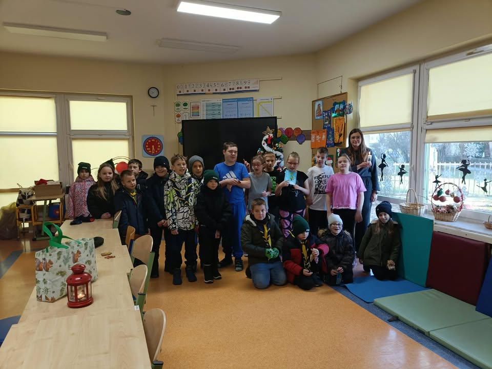 Warto podkreślić, że drużyna zuchowa „Słoneczne Promyki” co roku przynosi Światełko Betlejemskie do naszej szkoły, pielęgnując tę piękną tradycję i przypominając o wartościach, które łączą nas w tym szczególnym czasie.