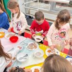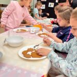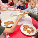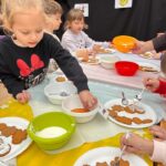 W dniu dzisiejszym odwiedziły nas dzieci z Przedszkola Miejskiego nr 4 w Zamościu i razem z przedszkolakami z grupy „Gumisie” mogły poczuć magię zbliżających się świąt. Celem spotkania były Piernikowe Warsztaty, podczas których dzieci dekorowały lukrem pierniczki i ozdabiały je kolorowymi posypkami.